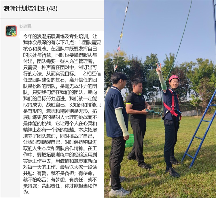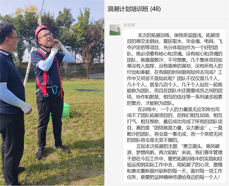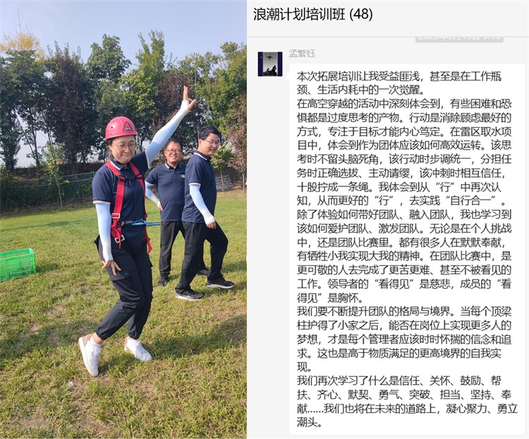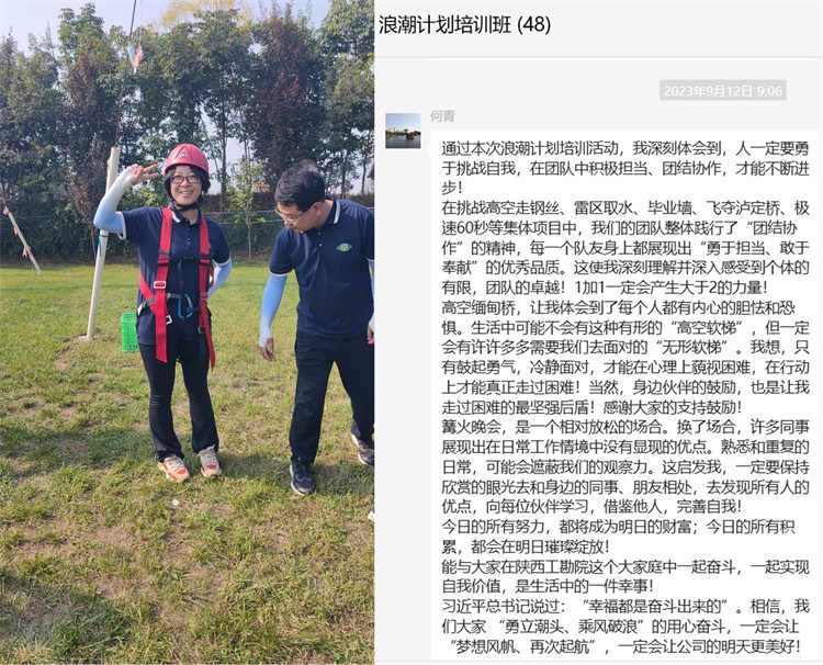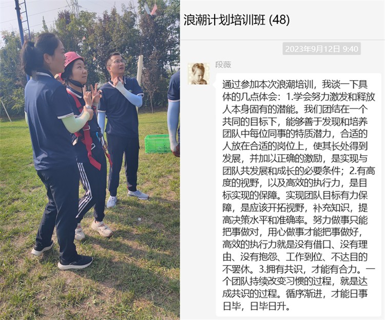 2023年9月6日--8日,陜西工勘院青年管理干部人才續(xù)航項(xiàng)目“浪潮計(jì)劃”培訓(xùn)班(第三期)圓滿結(jié)束。為期兩天的戶外拓展培訓(xùn)和一天的《非財(cái)務(wù)人員的財(cái)務(wù)管理知識(shí)》理論培訓(xùn),給大家?guī)?lái)了不同尋常的精神食糧。本次培訓(xùn)激發(fā)了學(xué)員們?cè)诶щy面前齊心協(xié)力、勇于承擔(dān)的工作斗志和心存感激、樂(lè)于奉獻(xiàn)、甘當(dāng)孺子牛的工作熱情,充分展現(xiàn)了參訓(xùn)人員凝心聚力,滿懷激情,攜手并進(jìn),共享成果的精神面貌。培訓(xùn)結(jié)束后,學(xué)員們感悟頗多,紛紛在微信群留下感言 :
